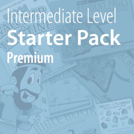 The Intermediate Starter Pack (Premium edition) contains everything you need for a 3rd-4th grade child. The Starter Pack includes Intermediate Student Pages and Intermediate Teacher Keys for a full year (104 lessons). It also includes labels for the Wall Maps and Time Line for a full year. The Bible Book Summary Cards, Children’s Songs and the Wall Maps and Time Line (Poly) are a one-time purchase. All products may be purchased individually in whatever quantity you choose.
